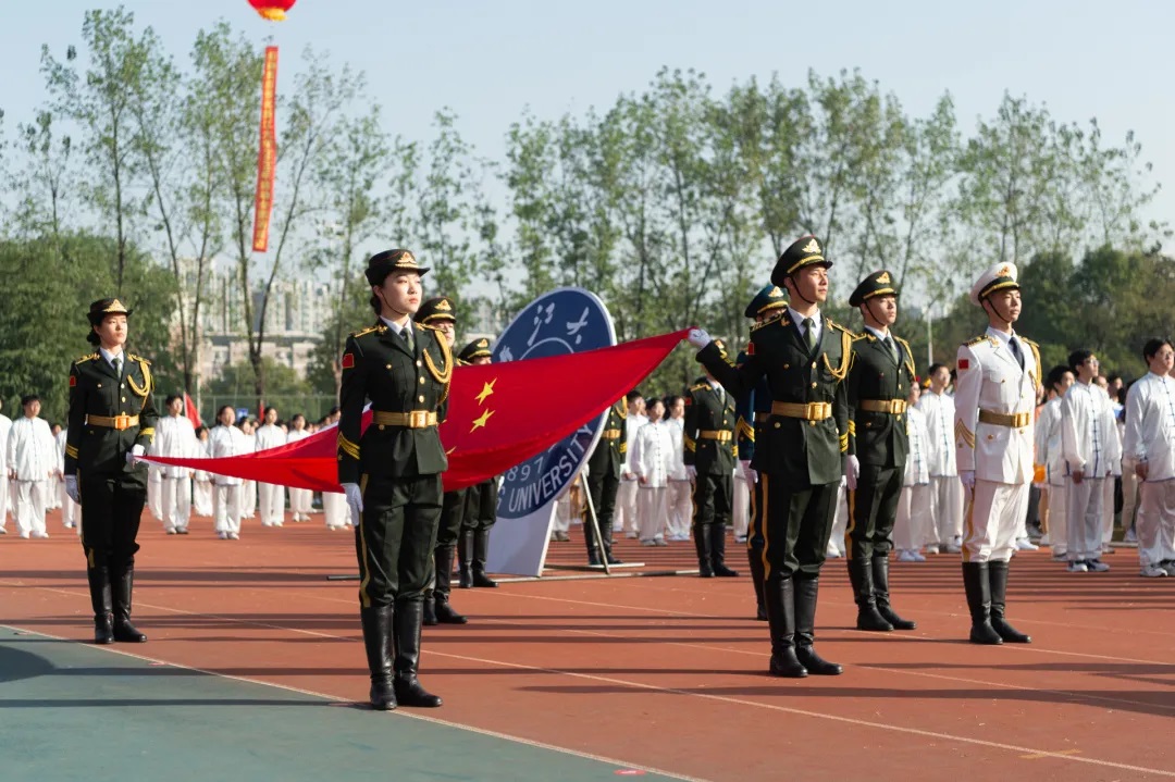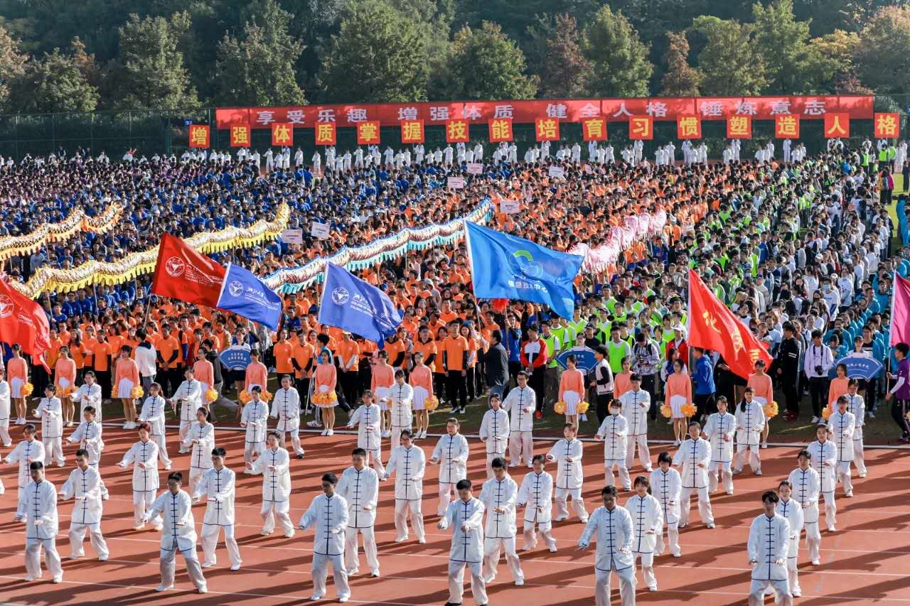 开幕式上,在《我爱你中国》的悠扬乐声中,同学们身着白衫,太极拳优美流畅,求是青年拳气势十足,舞龙舞狮铿锵有力,在队形的变换里将气氛推至高潮。刚柔并济中,民族传统体育项目的教学展示格外吸睛。田径场内,秋风渐起,但阳光和煦,各代表队分列于操场之上,激情洋溢,活力十足。激昂的国歌和悠扬的校歌中,国旗与校旗缓缓升起,随风飘扬。
