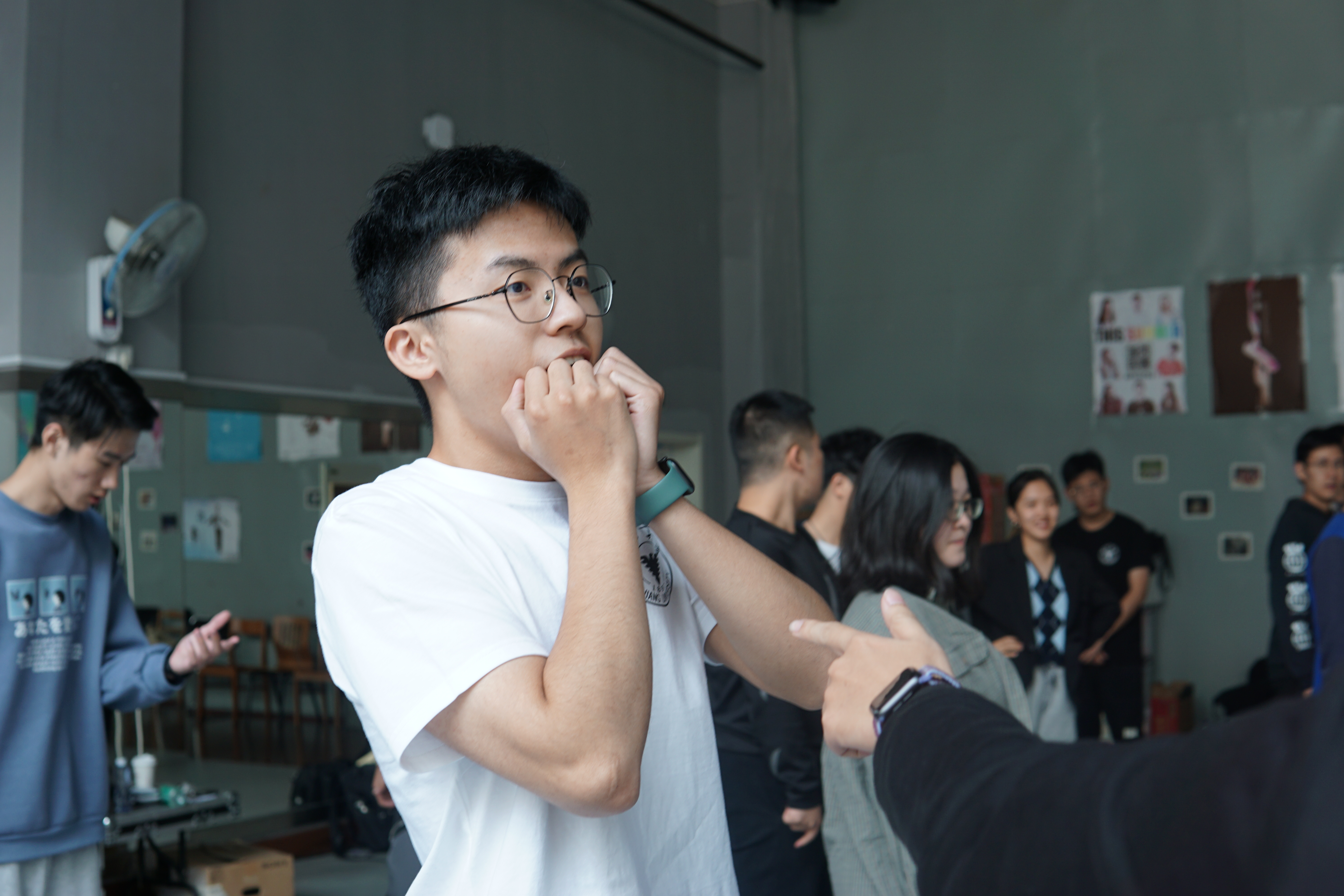 实验戏剧介绍讲座后紧接着就是学员实践体验编排戏剧,温迎迎老师是一位表演专业教师,她以通俗的方法引领同学们走近专业的知识。尽管许多参与者之前素不相识,但在温老师巧妙地破冰下,同学之间的隔阂一触即化,为之后高效地编排打下铺垫。通过对疫情期间的回忆,同学们了解了戏剧中的八味,也就是生活中常见的几种心情。紧接着,同学们又一步步深入,从定格表现某种“味道”的形态到几幅多人定格画面表现一个故事,真正做到了打破脚本式思维,转向开放式、生成式联想剧场。而最后的解释环节更是给了整次活动一次全面的升华,同学们将自己的生活经历与活动所学、人生所悟结合在了一起,互相之间交换意见,每一个人都有所收获,有所精益。