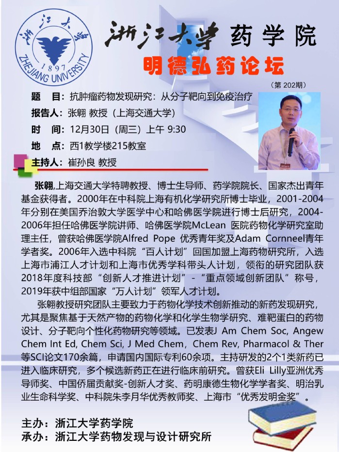 【药学院】明德弘药论坛(第202期):上海交通大学张翱教授学术报告