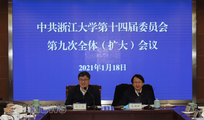 中共浙江大学第十四届委员会第九次全体(扩大)会议于1月18日在紫金港校区召开。全会听取并审议了学校党委常委会工作报告、《浙江大学“十四五”发展规划(审议稿)》及学校纪委工作报告。校党委书记任少波主持会议,报告过去一年主要工作,并对2021年学校改革发展作出部署。校长吴朝晖就《规划(审议稿)》作了说明。