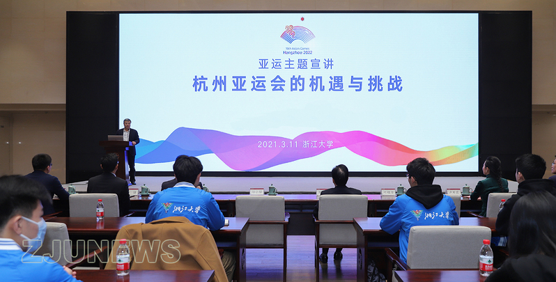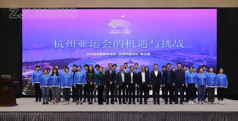 3月11日上午,杭州2022年第19届亚运会组委副秘书长、杭州市副市长陈卫强一行来到浙江大学紫金港校区开展主题教育宣讲活动,推动广大师生更好地了解、更多参与杭州亚运会。
