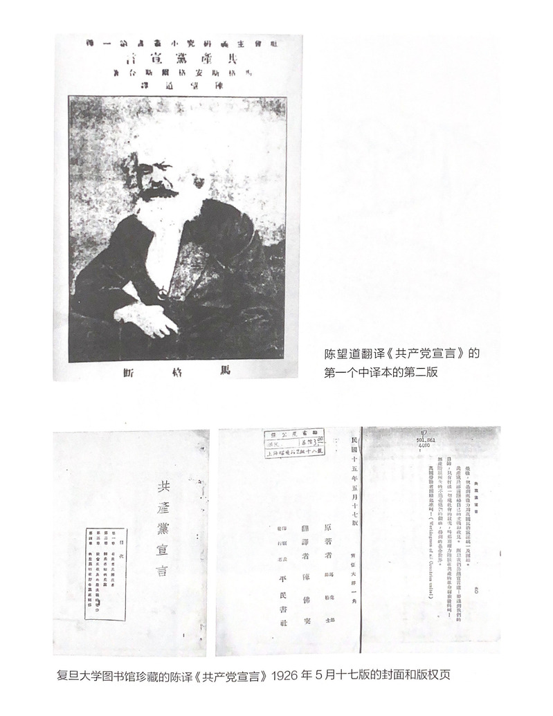 1920年8月,陈望道翻译的这部《共产党宣言》中文译本在上海出版。不到一年,中国共产党在上海诞生。毛泽东在《关于农村调查》一文中讲过:“我在1920年第一次看到了考茨基著的《阶级斗争》、陈望道翻译的《共产党宣言》和一个英国人作的《社会主义史》,我才初步得到认识问题的方法论。”