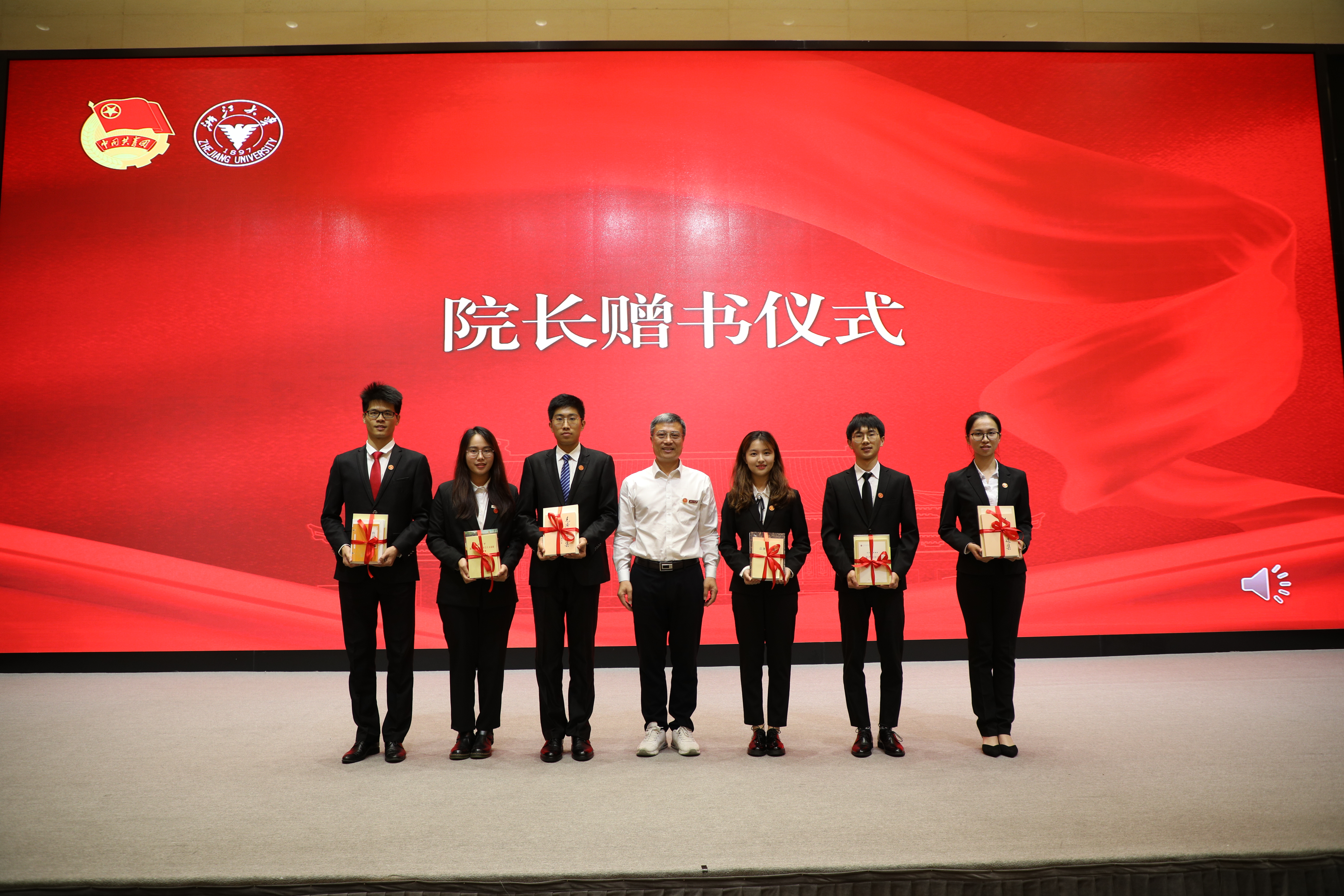 校党委副书记、青马学院院长邬小撑为青马学院第十四期学员代表赠书。他表示,培养坚定的青年马克思主义者是党的伟大事业薪火相传的根本保证,是实现党在新时代执政目标的需要,更是共青团的根本任务和政治责任,要不断提高政治站位,强化青马学院“为党育人”的政治功能,在一代代青年的接续奋斗中,化为助力全面建设社会主义现代化国家、实现中华民族伟大复兴中国梦的强大力量。