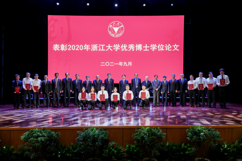 典礼上还表彰了2020年浙江大学优秀博士学位论文。《法理的概念研究》等9篇博士学位论文的作者及指导教师受到表彰。