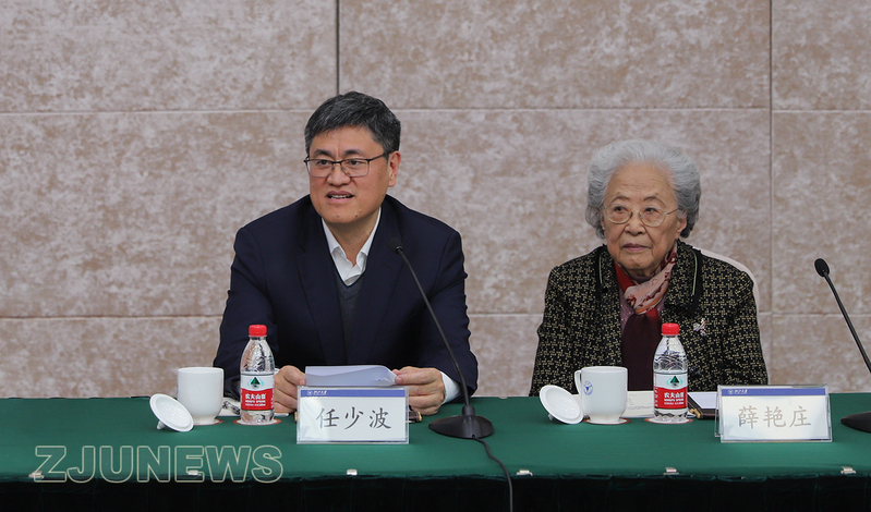 11月19日,纪念沈善洪教授九十诞辰暨浙江大学教育基金会沈善洪基金理事会换届会议在紫金港校区举行。浙江大学党委书记、教育基金会理事长任少波,浙江省政协原副主席、浙江大学发展委员会副主席、原杭州大学党委书记薛艳庄出席并讲话。