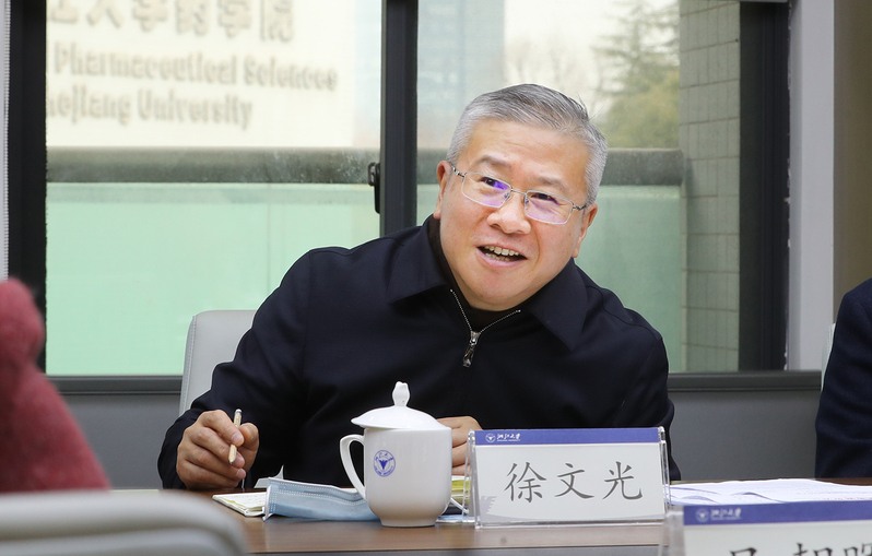 徐文光先后来到浙江大学能源工程学院和药学院,看望了中国工程院院士、能源工程学院院长高翔和浙江大学讲席教授、药学院院长顾臻。他充分肯定了两位老师的工作和取得的成果,希望大家能继续紧跟时代发展脉搏,以更高的站位和更大的格局,瞄准国家紧迫需求,求真求实,创新创优,在理念、思维、方法、机制和文化等各方面下得“真功夫”,解决“真问题”。