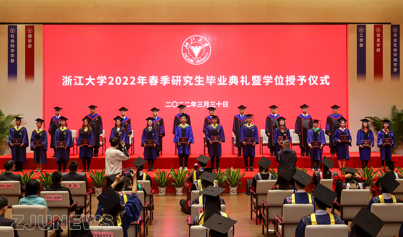 春风化雨育栋梁,桃李情深满园芳。3月30日上午,浙江大学2022年春季研究生毕业典礼暨学位授予仪式通过线上线下相结合以线上直播为主的形式举行,又一批求是学子将离开浙大,翻开人生新的篇章。