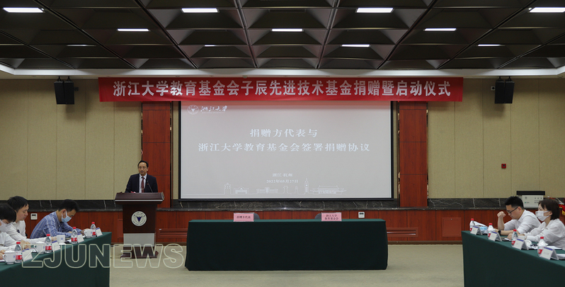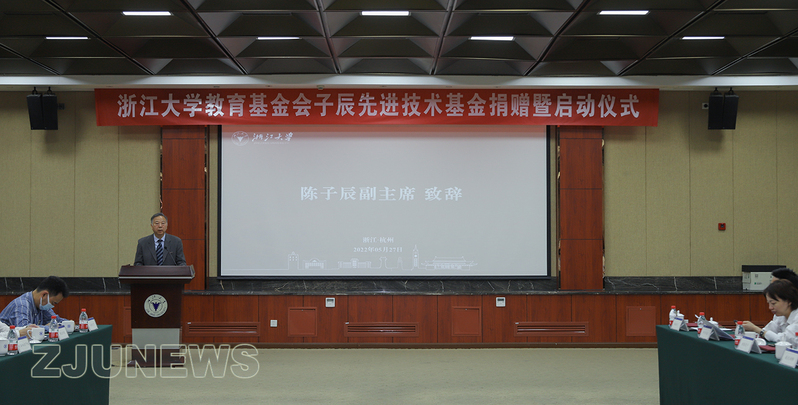 5月27日上午,浙江大学教育基金会子辰先进技术基金捐赠暨启动仪式在浙江大学玉泉校区举行。根据协议,该基金将主要用于支持浙江大学先进技术研究院的高精尖科技发展与产业孵化、高能级创新平台建设、人才队伍建设及学生培养等。首期基金由二十余家公司及校友代表捐赠。