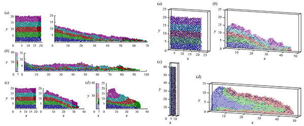 下图:沉积体内(a)颗粒分布形态(b)颗粒间粘性力链的分布形态