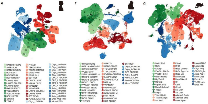 图1 人、猕猴和小鼠杏仁核单细胞转录组图谱
