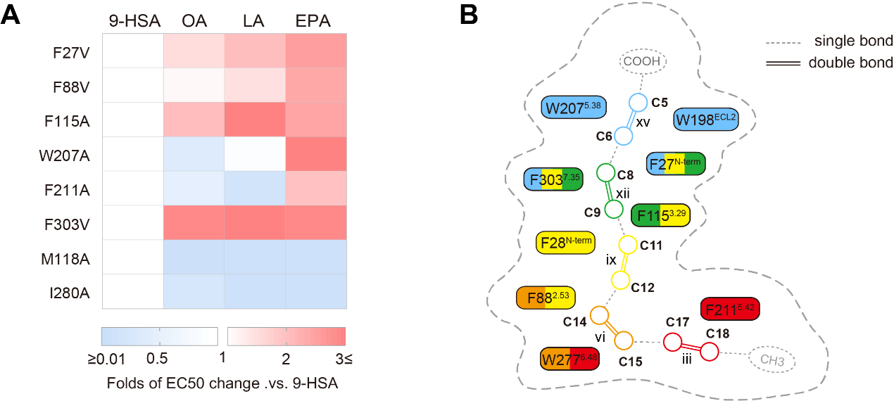 Omega-3鱼油受体如何识别不同的饱和、不饱和脂肪酸以及合成化合物?双键在自然界上普遍存在,哺乳动物是否有一个既定的系统识别这些双键修饰?如果存在的话,单键和双键的区别如此细微,如何精细调控受体蛋白,并转化为特定的生物信号传导?