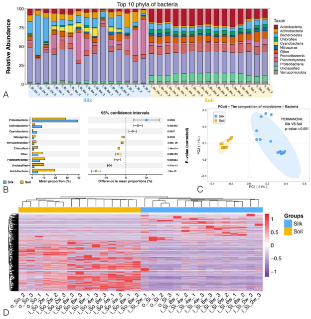 本研究解析的“丝绸际”和土壤对照间微生物组差异