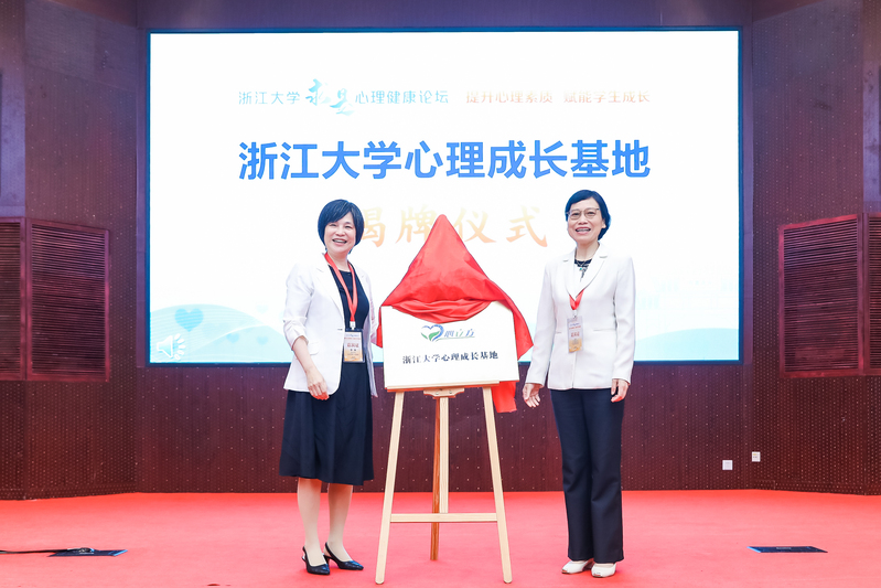 浙江大学党委副书记朱慧和浙江大学心理健康教育与咨询中心主任、杭州市第七人民医院院长李涛出席论坛并为新建成的“浙江大学心理成长基地”揭牌。