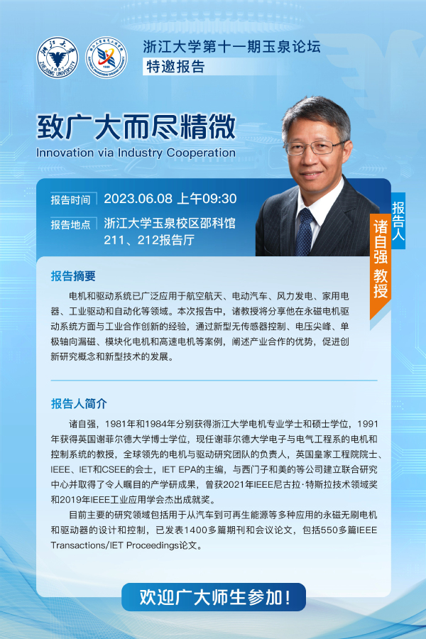 【报告地点】:浙江大学玉泉校区邵科馆211、212报告厅