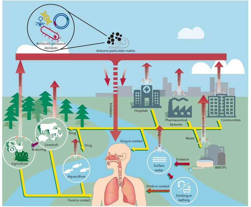 图2: 抗生素耐药扩散路径