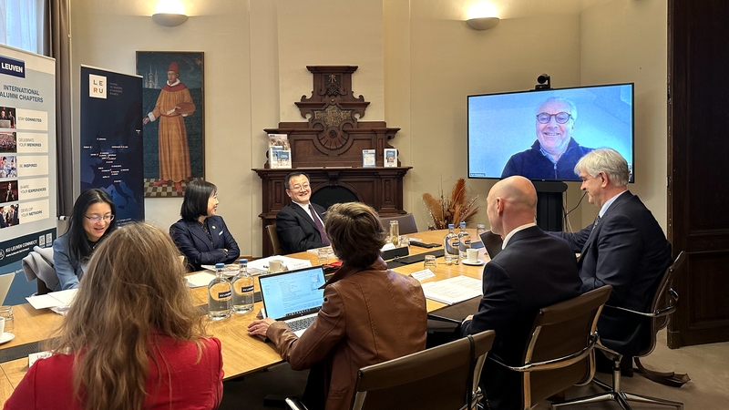 在荷语鲁汶大学,Luc Sels校长因突发的意外情况,特别委托外事副校长Peter Lievens,科学、工程与科技副校长Gerard Govers,研究政策副校长Jan D'Hooge热情接待代表团。杜江峰与Peter Lievens代表两校签署新一轮校际合作备忘录,双方期待深化在循环经济领域的合作,拓展在生物医学、工程科技、材料与能源等领域交流,进一步构建多形式、跨学科、深层次的合作体系。访问期间,代表团调研了该校研究与发展中心(LRD),了解学校在技术转移、创新创业、产学研协同方面的经验做法,并开展建筑工程、光电科学、公共管理等学科对口交流。