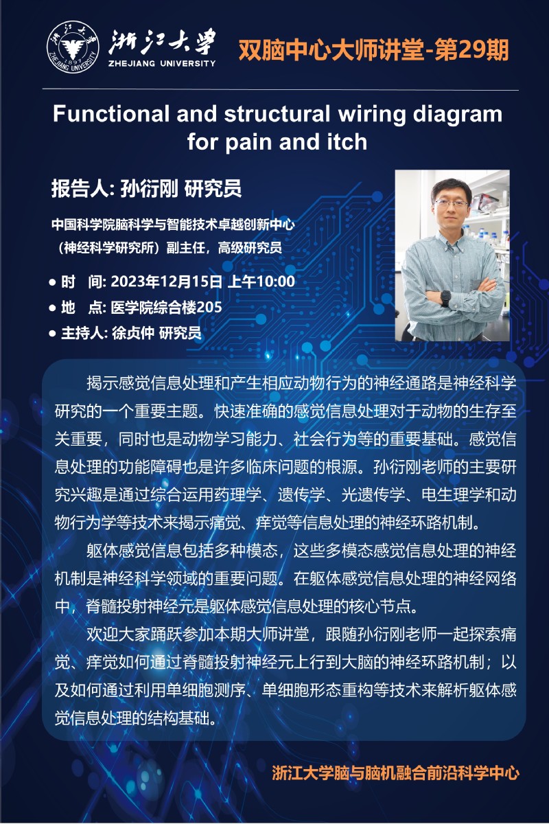 【双脑中心大师讲堂】Functional and structural wiring diagram for pain and itch——孙衍刚 研究员
