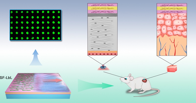 The research team led by WANG Ben, an associate professor in the Zhejiang University Institute of Translational Medicine, develops a shear-flow-driven layer-by-layer (SF-LbL) in situ self-assembly technology. Their research is published in the journal of ACS Nano. This technology not only boosts the assembly speed tremendously and optimizes the surface texture of assembly films but also produces the in situ assembly film on wounded corneas and skin and accelerates the restoration of chronic wounds caused by diabetes.