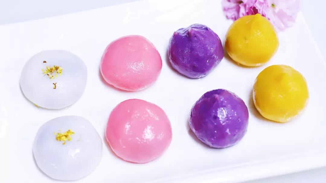 Owing to the color of the plant, traditional Qingtuan is green. Now more varieties are available at ZJU cafeterias to satisfy diverse tastes. The white ones are original rice flavor with osmanthus flowers on it. The pink ones are made of pomegranate juice. The purple ones got their color from purple sweet potato. The bright yellow Qingtuan is made of pumpkins.