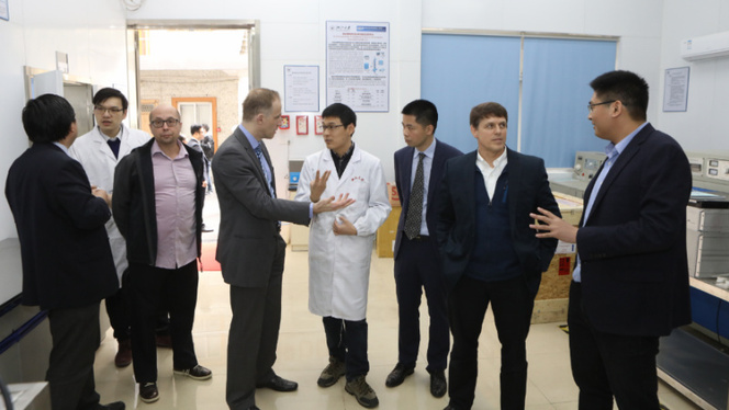 ZJU's College of Energy Engineering has achieved top grades during a three-day international evaluation. Image: Experts visit research facilities at ZJU.
