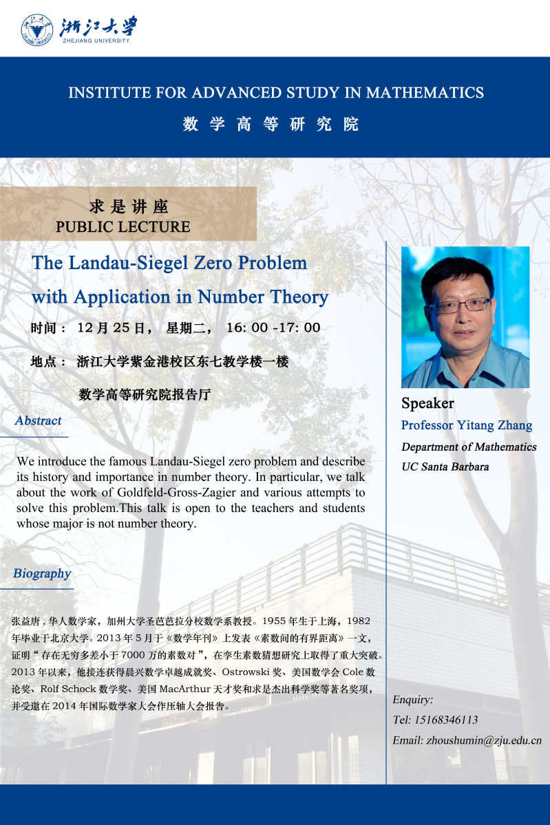 Venue: Lecture Room, Institute for Advanced Study in Mathematics, 1st floor, No. 7 East Teaching Building