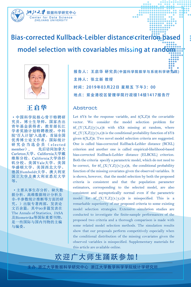 Speaker: Prof. WANG Qihua, Academy of Mathematics and Systems Science, Chinese Academy of Sciences