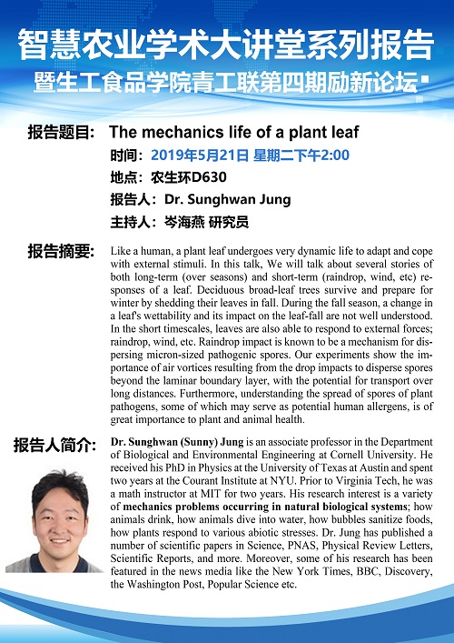 Speaker: Dr. Sunghwan Jung, Department of Biological and Environmental Engineering at Cornell University
