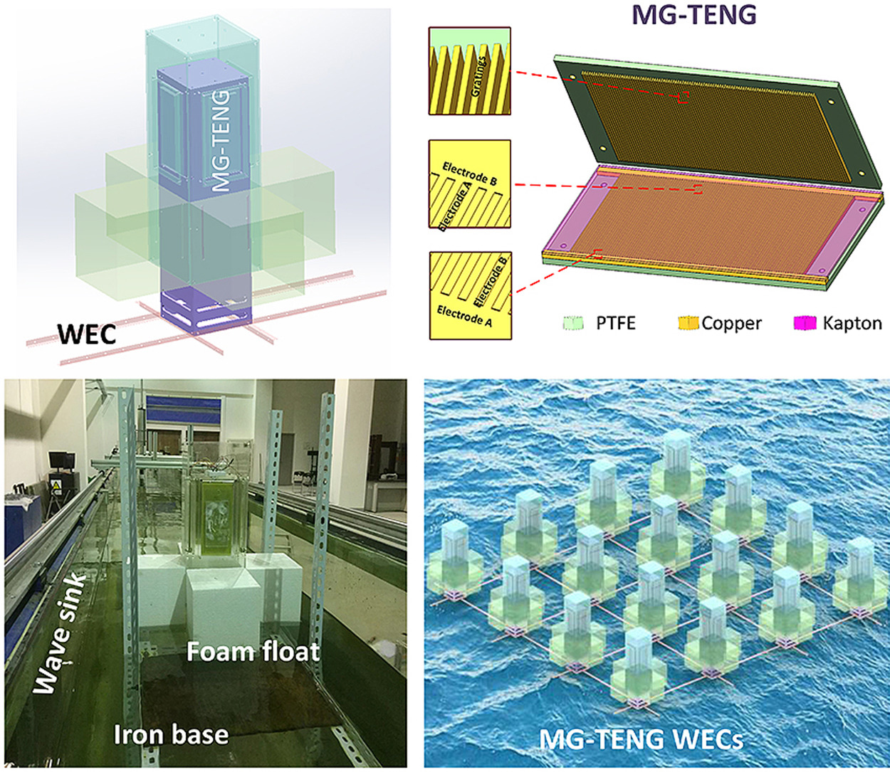 The array installation of MG-TENG WECs shows great promise for the power supply system in ocean observation technology, ocean engineering platforms, marine pasture or deep-sea sensors.