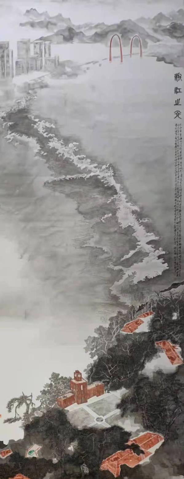 To celebrate the 124th anniversary of Zhejiang University, Prof. CHI Changqing donated his immense calligraphic work—Zhejiang University’s Alma Mater (lyrics by MA Yifu)—to the University. This over-21-meter-long and nearly-8-meter-high work consists of 156 single-character works in Wei Stele script. It is by far the largest piece of calligraphy created by Prof. CHI.