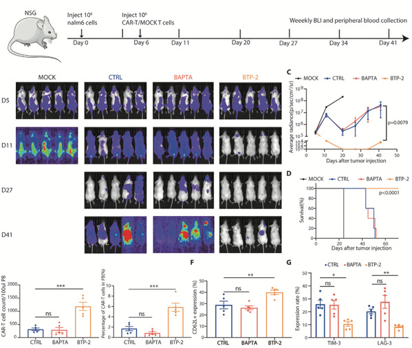 Figure 2 BTP-2 pretreatment enhances the anti-tumor effect of CAR-T cells in vivo.
