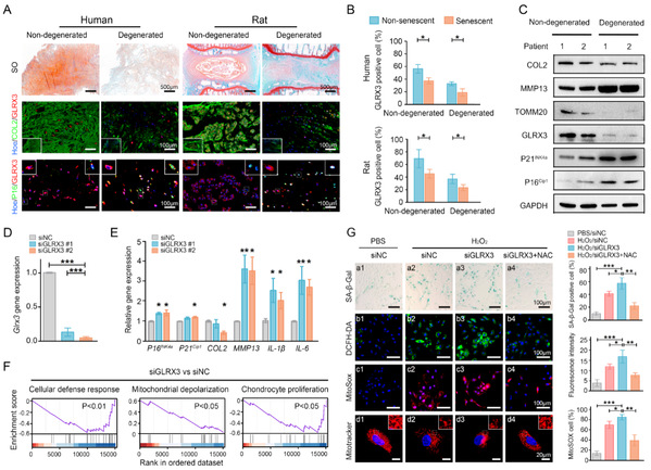 Fig. 1. The role of antioxidant molecule GLRX3 in the NP cell senescence of degenerated disc