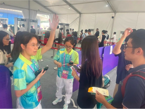 Volunteers at the Zhejiang University (Zijingang Campus) Gymnasium provided service and support for the competition venue.