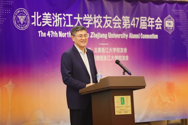 While in the US, Chairman Ren attended the 47th North America Zhejiang University Alumni Convention in Seattle, addressing over 200 alumni representatives. He acknowledged the pivotal role alumni play in university advancement and urged continued support for its global initiatives. Additionally, the delegation held enriching interactions with alumni in Los Angeles, Boston, and Toronto, reminiscing about their shared ties and discussing future developments.