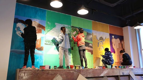 Due to limited wall space, the members of the Oil Painting Association chose five campus scenes as the foundation for the painting. Scenes of dawn at Huajiachi, morning light at Yuquan noon at Zijingang, evening at Xixi, and nightfall at Zhijiang were interconnected by time and season, resulting in a five-part mural. Zong Ye, the president of the Oil Painting Association, stated, "We are eager to showcase the beauty of the campus and demonstrate the spirit of Zhejiang University through our artwork. I am also working with others to create more pieces for other campuses, such as the clock tower in Haining and the lighthouse in Zhoushan."
