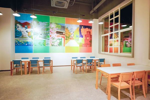 The opportunity to use a blank wall for this painting arose during the renovation of the Yishantang. Based on the existing building structure, Professor LU Ji from the Architectural Design and Research Institute led the design work - aiming to transform the previously dim dining environment into a warm and bright space. With the support of the Logistics Group's Food Center, this wall became an "imaginary utopia", seamlessly integrating the beautiful scenery of Qiu Shi Garden and the collective participation of Zhejiang University members into the architectural space.