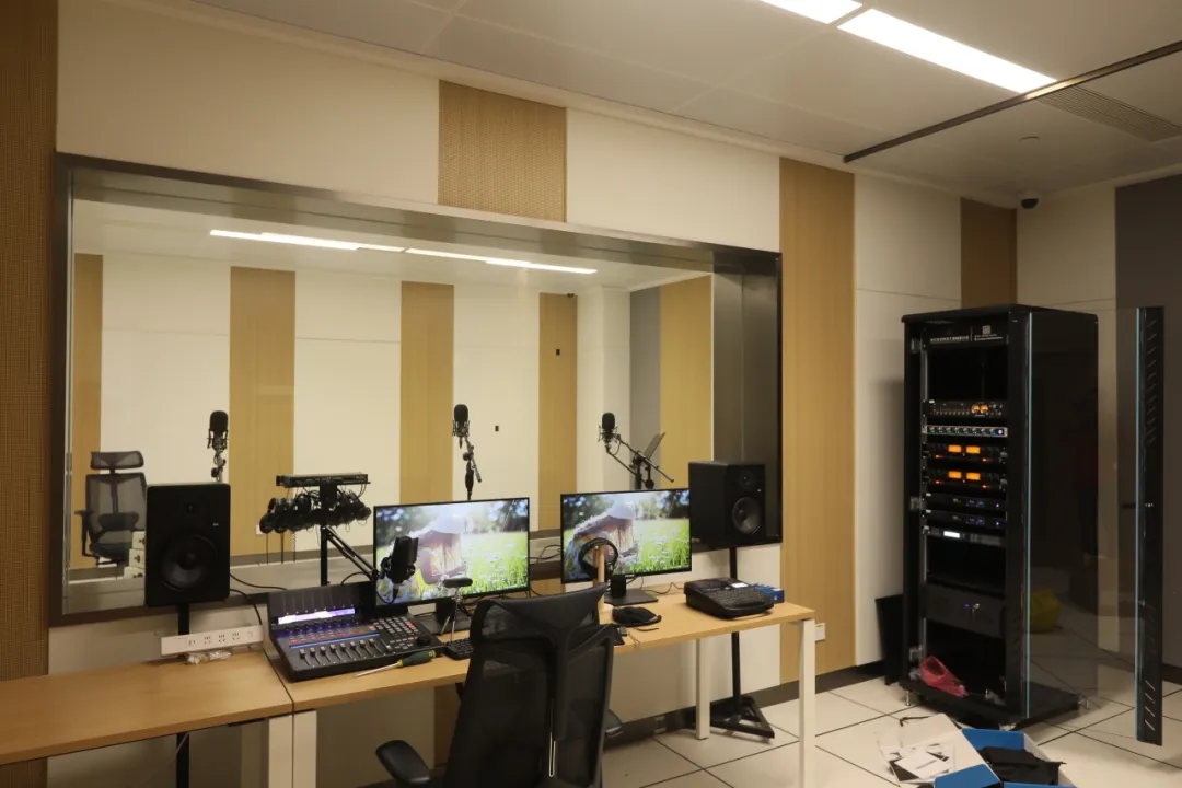 The Media Workshop on the fifth floor of the Main Library contains three independent studios: Telestudio, Recording Studio, and Multifunctional Photography Studio. The Telestudio is equipped with broadcast-grade audio-visual guide and control machine, a professional green screeen, and a camara, providing a profissional film and television production environment. The Recording Studio features audio workstations, professional microphones and recording software, offering ideal conditions for music recording. The Multifunctional Photography Studio caters to photography enthusiasts with its dark sound-absorbing curtains, photography stands, and accompanying equipment.