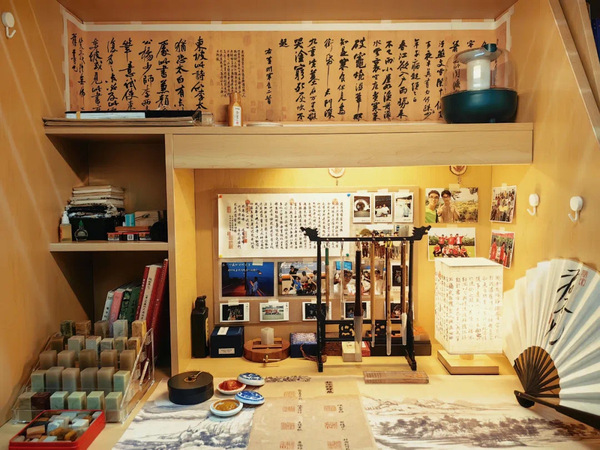 The Traditional Chinese Desk created by DU Jianghan, a junior at the Ocean College of Zhejiang University, has recently become a cultural sensation, captivating both students and faculty on and off campus. Featuring a felt pad, calligraphy and seal carving tools, a classical-style lamp, and nostalgic photographs, the desk exudes a strong atmosphere of traditional Chinese culture. DU describes it as more than just a workspace for his calligraphy and seal carving—it's also a personal sanctuary that connects him to both his studies at Zhoushan Campus and his dreamland.