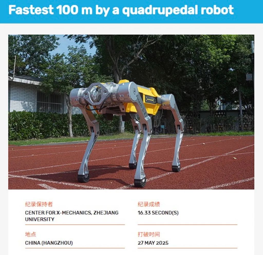White Rhino clocked 16.33 seconds over 100 meters, breaking the previous Guinness World Record of 19.87 seconds held by South Korea’s Hound robot. It is now positioned as the world’s fastest quadrupedal robot over the distance.