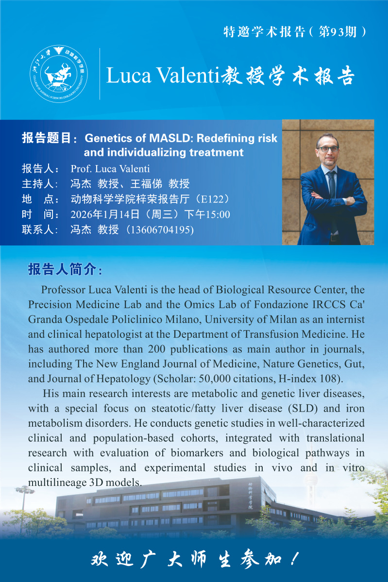 Venue: E122, College of Animal Sciences, Zijingang Campus