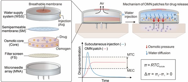The familiar IV drip may one day become a thing of the past. The Zhejiang University team has developed an adhesive infusion patch that uses osmotic pressure differences to drive continuous drug release through hollow microneedles, enabling painless and stable delivery of large-dose medications. This coin-sized patch can sustain drug release for up to 24 hours.