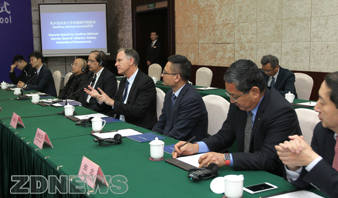 8 января 2016 года Чжэцзянский университет, Пенсильванский университет и Пекинский Университет подписали договор о создании китайско-американской школы бизнеса. Постройка Китайско-американской школы бизнеса планируется в городе Хайнине, в интернациональном кампусе Чжэцзянского университета, а также в Шанхае и Пекине. Секретарь партии Джин Дешуей, ректор Ву Чжаохуэй и директор Уортонской школы бизнеса Пенсильванского университета Geoffrey Garrett совместно подписали договор. Будучи неюридическим лицом, китайско-американская школа бизнеса будет опираться на преимущества кадрового резерва и гуманитарную атмосферу Чжэцзянского и Пекинского университетов, использовать передовой опыт научных исследований и преподавания Уортонской школы бизнеса. Чжэцзянский университет отдает все силы для создания международной школы бизнеса, чтобы подготавливать квалифицированных бизнесменов с глобальным кругозором и отечественным опытом. Одновременно проходят интернационализация работ и их адаптация, адаптация новейших торгово-промышленных исследований. Уортонской школы бизнеса Пенсильванского университета – один из старинных институтов бизнеса в мире. Большой популярностью пользуются такие направления, как бакалавр, MBA и доктор наук. Церемонию подписания договора возглавил первый проректор Чжэцзянского университета, директор международной школы (в кампусе Хайнин) Сун Юйхуа. Приняли участие в церемонии проректор Чжэцзянского университета Ин Ибинь, председатель корпорации «Синь Шань» Тань Лисинь, который спонсирует этот проект, а также должностные лица соответствующих отделов Чжэцзянского университета.