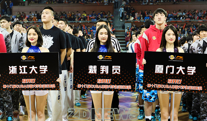 После церемонии открытия мужская баскетбольная команда Чжэцзянского университета сыграла с командой Сямэньского университета. Этот матч посмотрели более 5000 зрителей. Сначала команда Сямэньского университета догнала команду Чжэцзянского и стала увеличивать разницу в счёте. Но, благодаря непрерывным усилиям своих спортсменов Чжэцзянский университет обыграл Сямэньский со счетом 78:63, положив сезону хорошее начало. Зрители кричали от радости. Студентка Ян Хуэйлин с волнением отметила: Я очень переживала за сегодняшний матч и надеюсь, что в дальнейших соревнованиях все команды смогут показать на что способны.